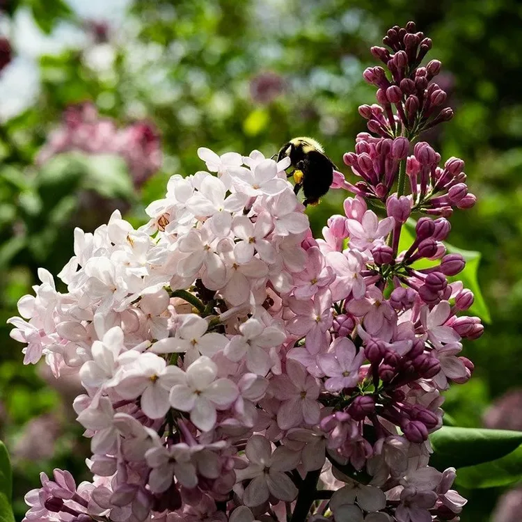 Цветки простые, среднего размера Бутоны у сирени «Медовый спас» коричневые с зеленоватым оттенком, по мере распускания цветки светлеют и сверху приобретают оттенок сочного гречишного меда с золотисто-розоватым отливом. Внутри лепесток светло-розовый с лиловым оттенком.