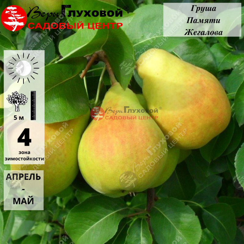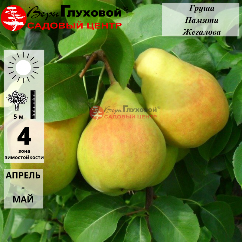 Сорт груши Память Жегалова относится к скороплодным. Дерево дает стабильный урожай. С одного дерева снимают до 40 кг плодов. Созревание груши происходит осенью в конце сентября. Высота дерева от 3 до 5.