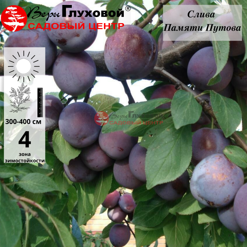 Каждое дерево приносит от 10 до 12 кг урожая. Срок хранения достигает 10 дней, уровень транспортабельности средний. Слива «Памяти Путова» считается универсальным сортом, часто используется для изготовления консервации, наливок и кондитерских изделий (пастила, мармелад и др.)."