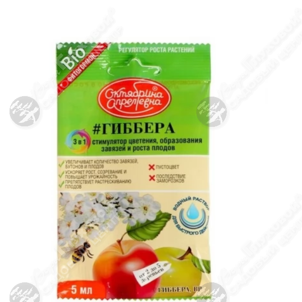 Биологический фитогормон, регулирующий развитие и рост растения. Применяется в качестве стимулятора плодообразования, усилителя ростовых и формообразовательных процессов, также ускоряет срок созревания плодов.