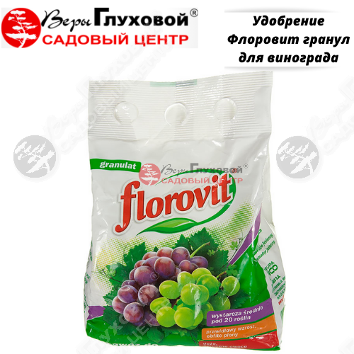 Многокомпонентное минеральное почвенное удобрение, применяется для приготовления места для винограда и удобрения уже растущих кустов в период вегетации. Благодаря специальной рецептуре препарат активен в течение всего вегетационного периода. В небольшой степени влияет на снижение уровня pH почвы, содействуя хорошему доступу к микроэлементам. Флоровит для виноградных растений содержит натуральные полезные ископаемые, что делает его более благоприятным для окружающей среды. Не содержит нитратов. Несмотря на то, что виноград можно вырастить почти в каждой почве, это растение заметно реагирует на удобрение.
