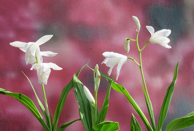 Род орхидей Блетилла (Bletilla) включает около 10 видов. В основном они лиловые, розово-фиолетовые, но есть и белые.